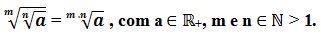 - Para resolvermos a raiz m-esima de uma raiz n-ésima, multiplicamos os índices entre si mantendo intacto o radical interno.