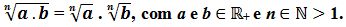 - A raiz n-ésima de um produto é igual ao produto das raízes n-ésimas.