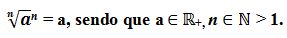 Para um número real a positivo, com n sendo um número natural par e positivo, maior que 1, tem-se um b, tal que, se
